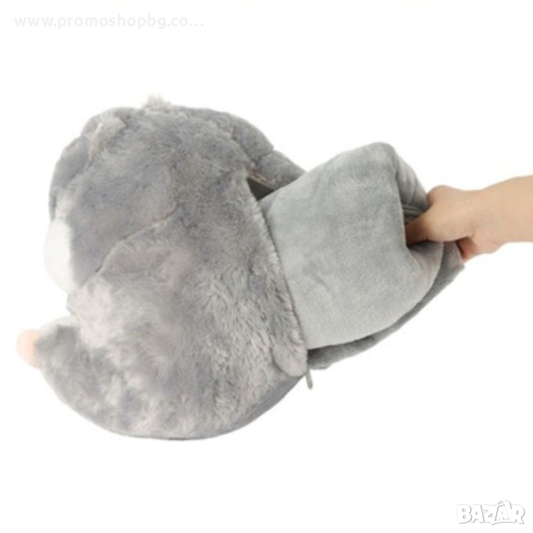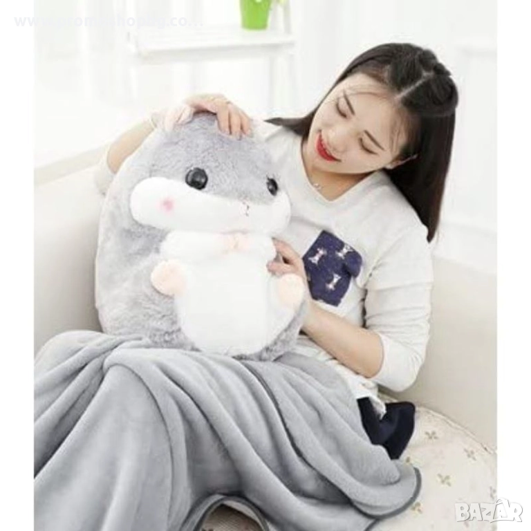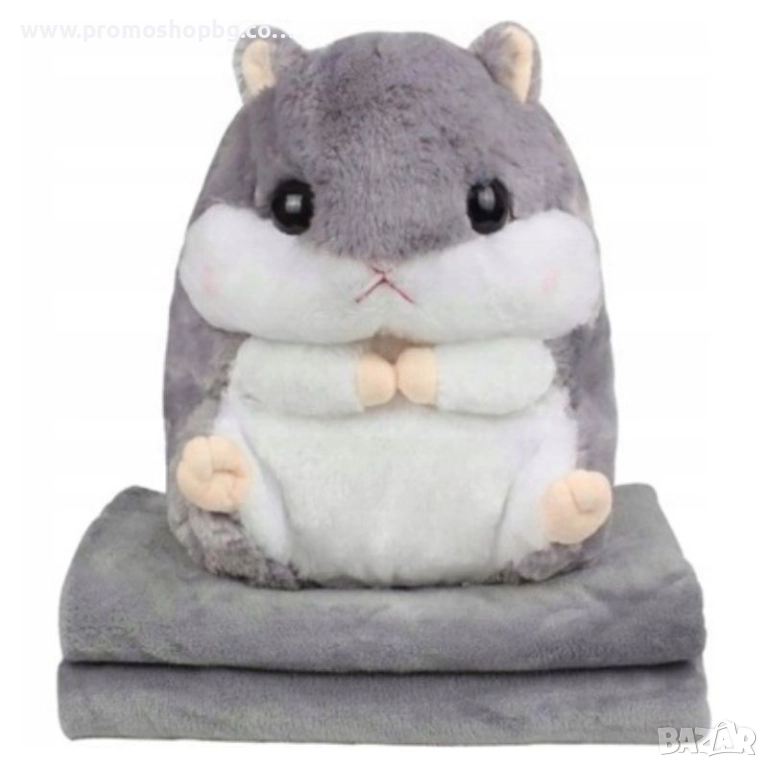 3 в 1 - Плюшена играчка Хамстер, възглавница и одеяло Kruzzel, сиво