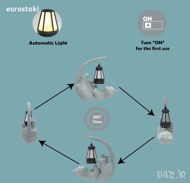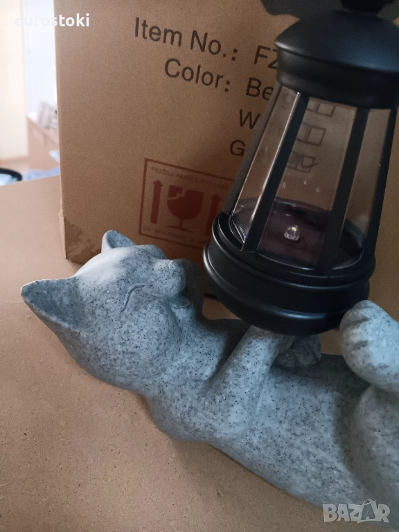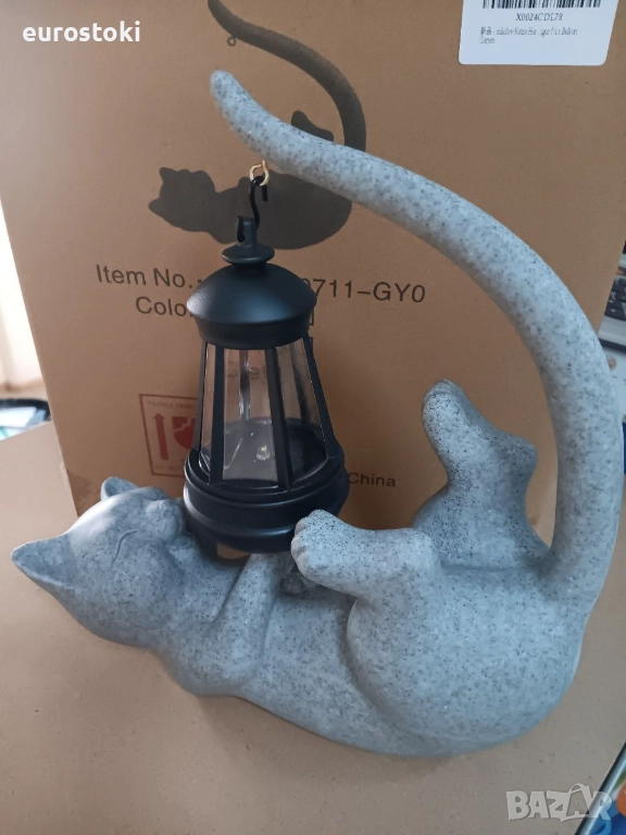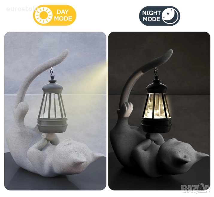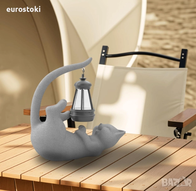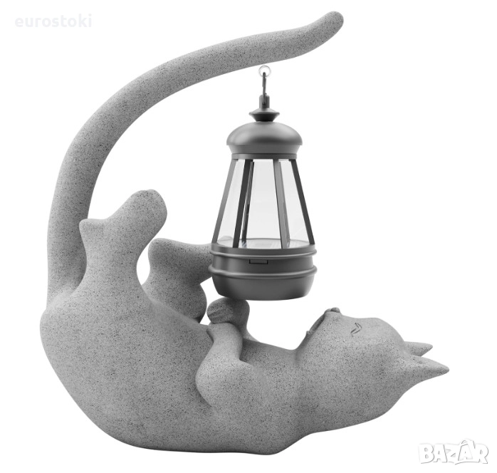 Статуетката на котката включва подвижен соларен фенер, който хвърля магическо сияние в тъмното.