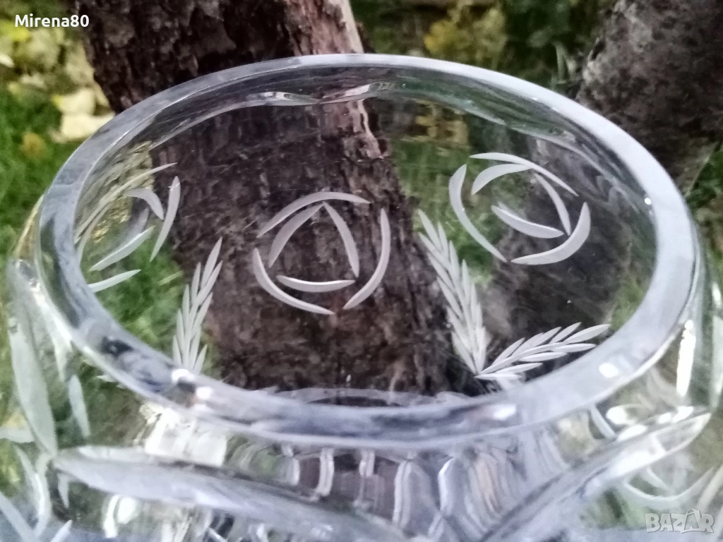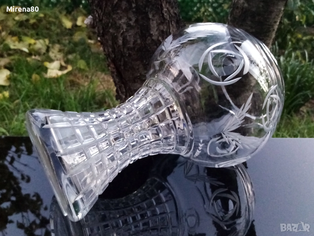 Представям ви една наистина внушителна руска красавица (съветска, ако трябва да бъдем точни). Висока 28 см, диаметър - 16 см в най-широката част, тегло - точно 2 кг ! Най-интересна е формата, заради която изглежда още по-огромна. Ръчна гравюра стилизирана роза със страхотен релеф в долната част. Безупречна !