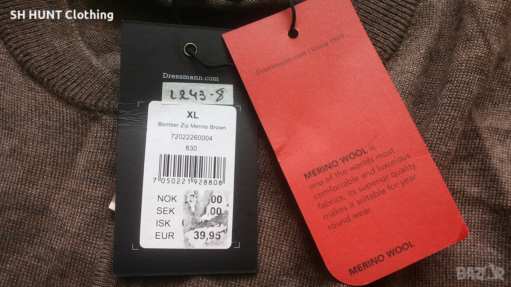 Dressmann Bomber Zip Merino Brown 50% размер XL жилетка 50% Мерино вълна - 1509 → Обява 52507358