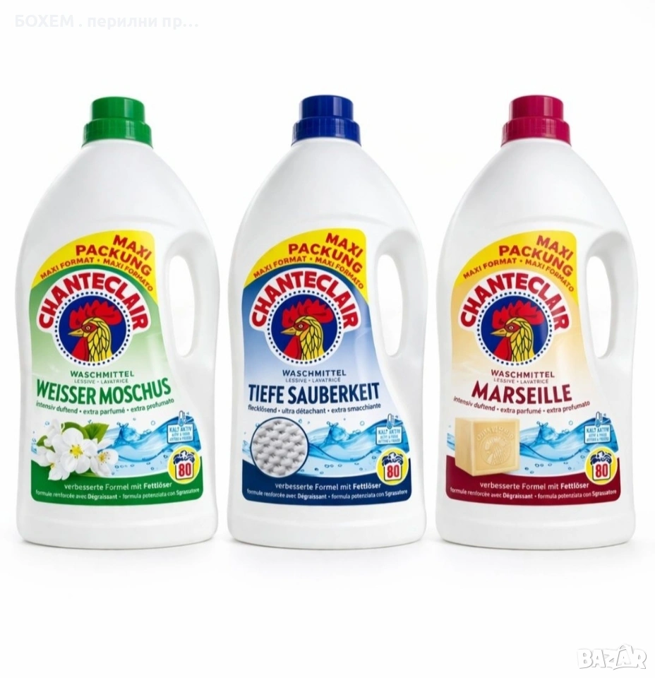 Предлагаме висококачествен течен перилен препарат Chanteclair в голяма икономична опаковка. Препаратът почиства ефективно дори упорити петна и оставя дрехите свежи и приятно ароматизирани.