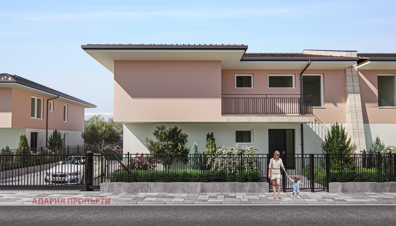 Всяка една от къщите представлява двуетажна еднофамилна жилищна