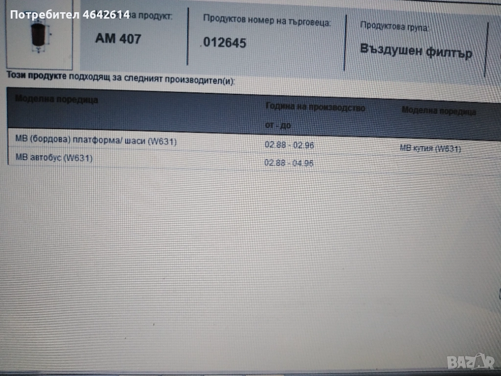 Въздушен филтър за Mercedes-Benz MB100 микробус, ван, платформа 88-96 г АМ407 → Обява 52508654