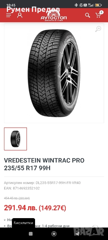 Зимни гуми Vredstein Wintrack PRO → Обява 52509279