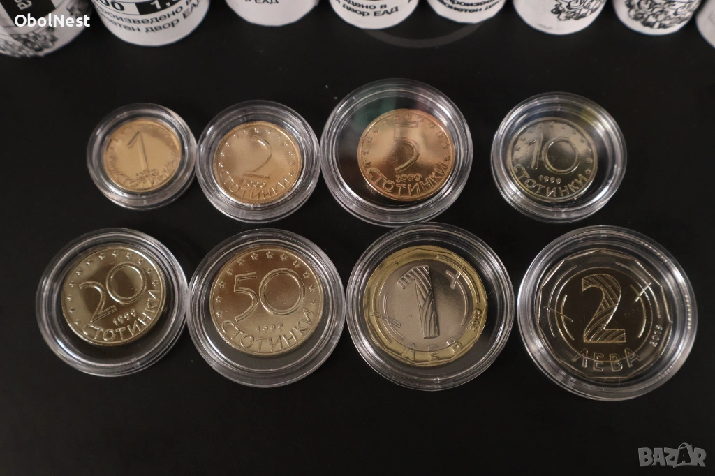Пълен сет UNC монети от 1 ст. до 2 лв. (1999, 2000, 2002 и 2015) в капсули → Обява 52509356