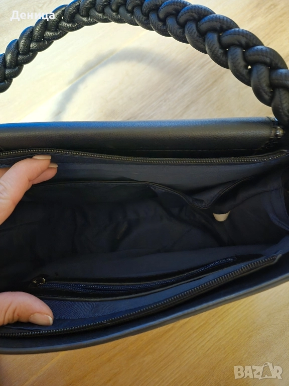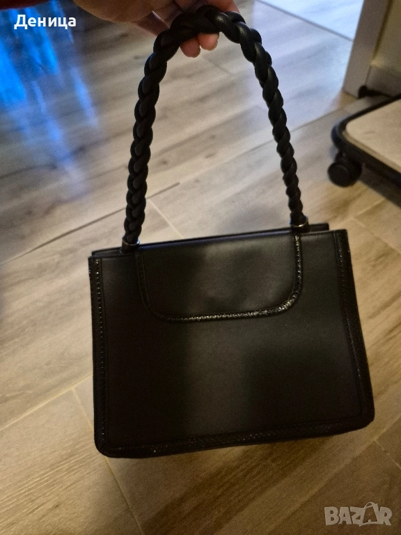 елегантна дамска чанта в черно с интересна дръжка, неразличима от нова, слагана е точно два пъти