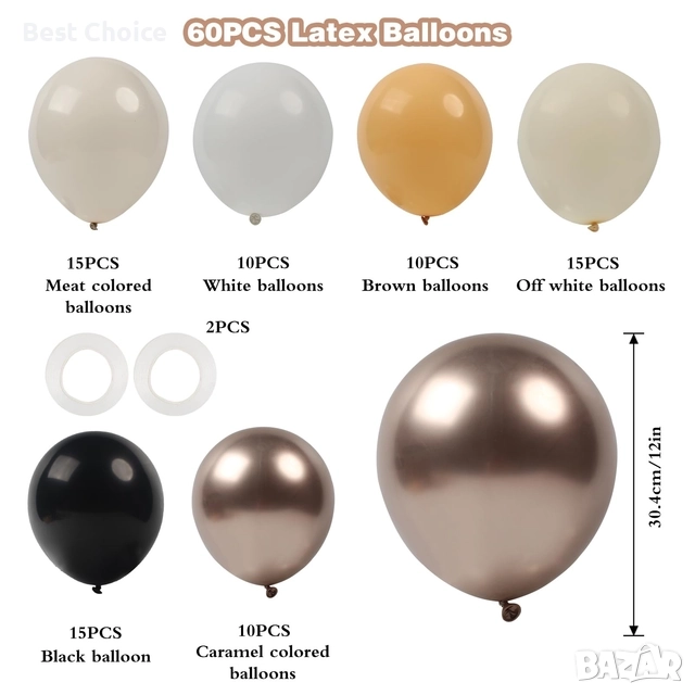 60 броя балони комплект за балонна арка, парти, сватба, рожден ден: 3 €