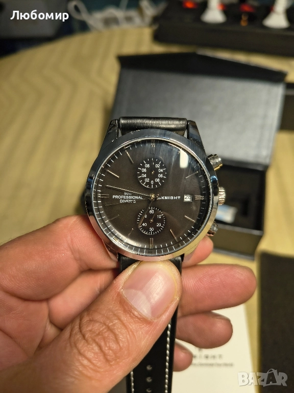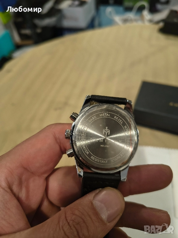 хронографски часовник с 2 подциферблата за минути, часове и аналогов дисплей за дата, корпусът е с устойчив на надраскване минерален циферблат и удароустойчива неръждаема стомана, красива изработка, издръжлив, животът на часовника е повече от една година.
