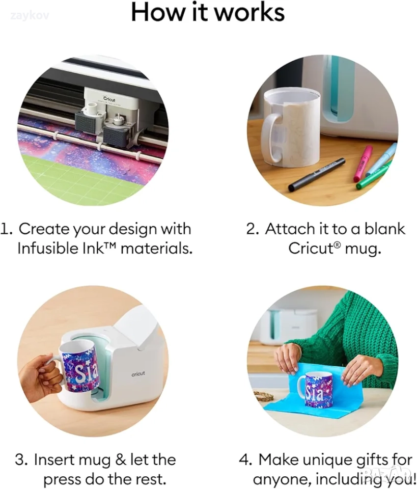 Уникална персонализация: Патентованата, зонално нагрявана плоча създава постоянни, устойчиви на отлепване и подходящи за миялна машина резултати. Използвайте трансферни листове, химикалки или маркери с нелепящо се мастило. (Продават се отделно)