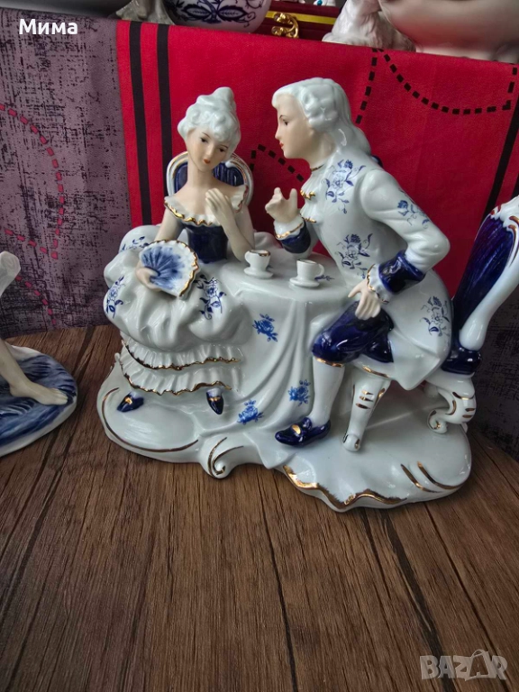 Голяма фигура дама и кавалер на чаша чай - дължина 23/височина 20 см. - Цена 75 лева