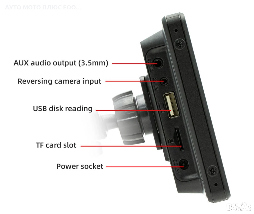 AUX портът осигурява допълнителни възможности за свързване към автомобилната аудиосистема.