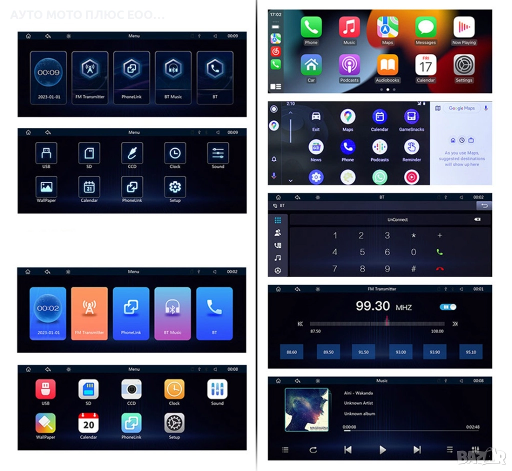Поддържа Apple CarPlay, Android Auto и MirrorLink, осигурявайки безпроблемна интеграция със смартфони за навигация, обаждания, съобщения и музика.
