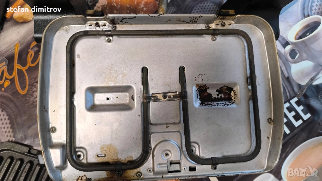 Оптиглила е работещ единствените забележки са лисва тавичката в която се събира мазнината и има козметични забележки горния капак е леко натиснат на едно място .