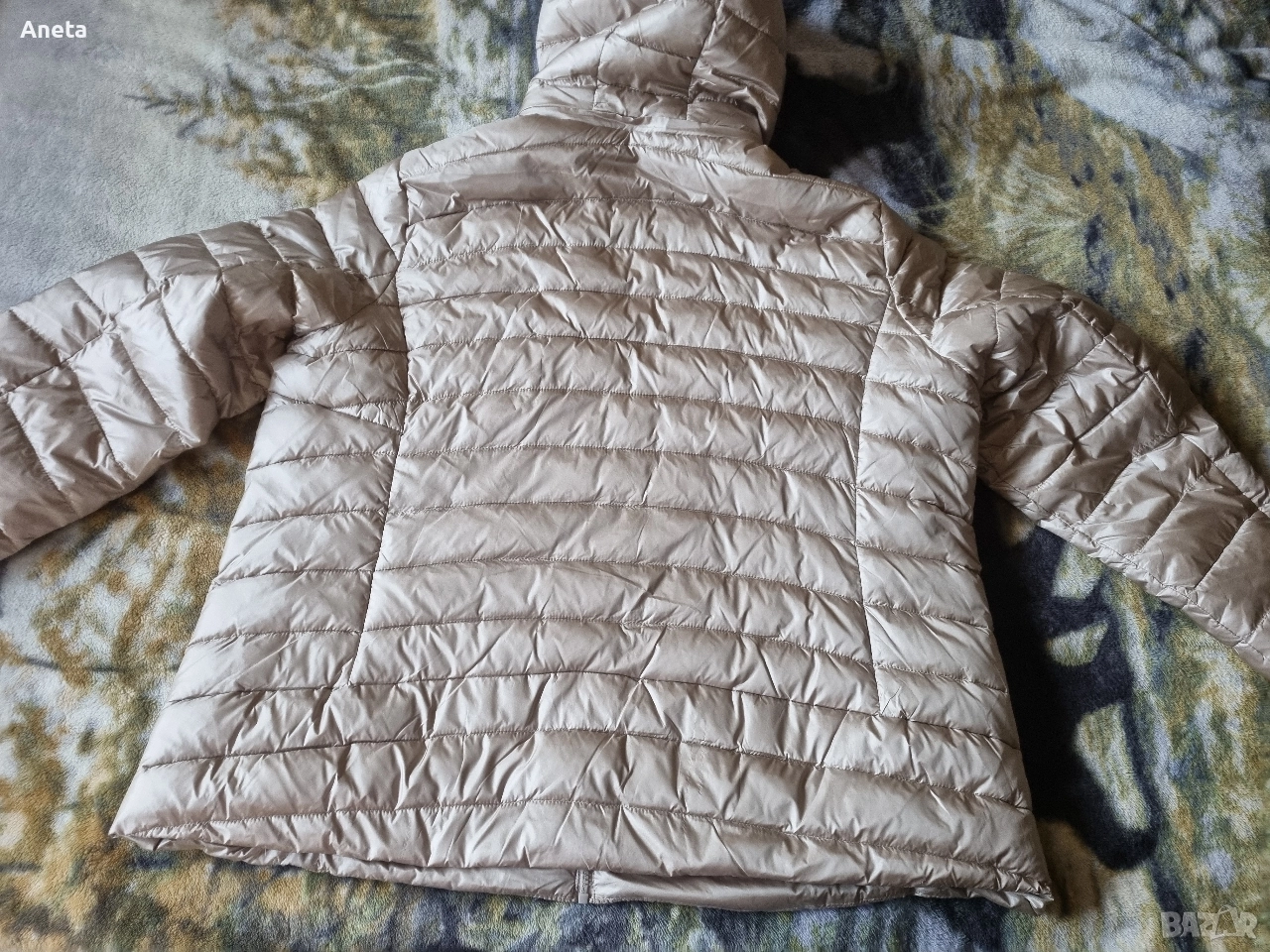 Леко и топло яке с махаща се качулка, отлично, носено броени пъти. Размери едностранно ГО 68 см, ханш 74 см, дължина 72 см.