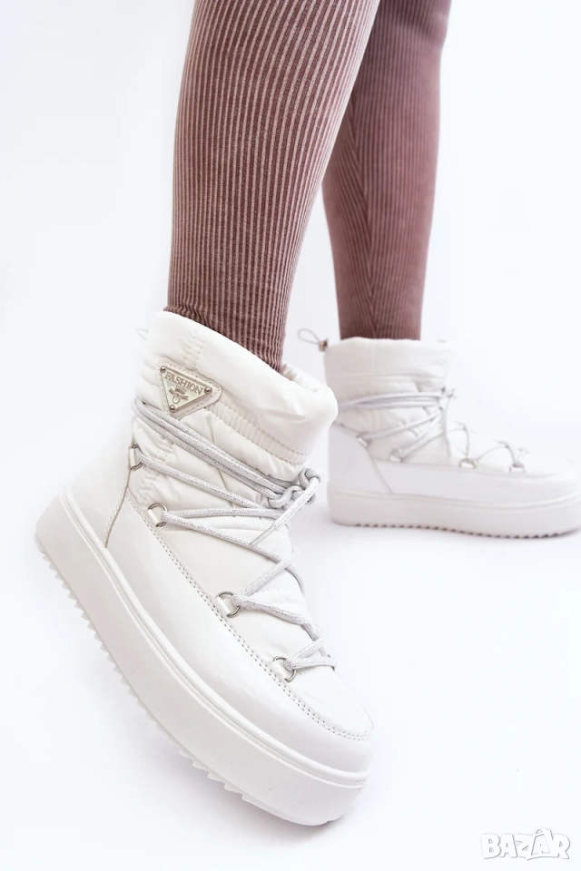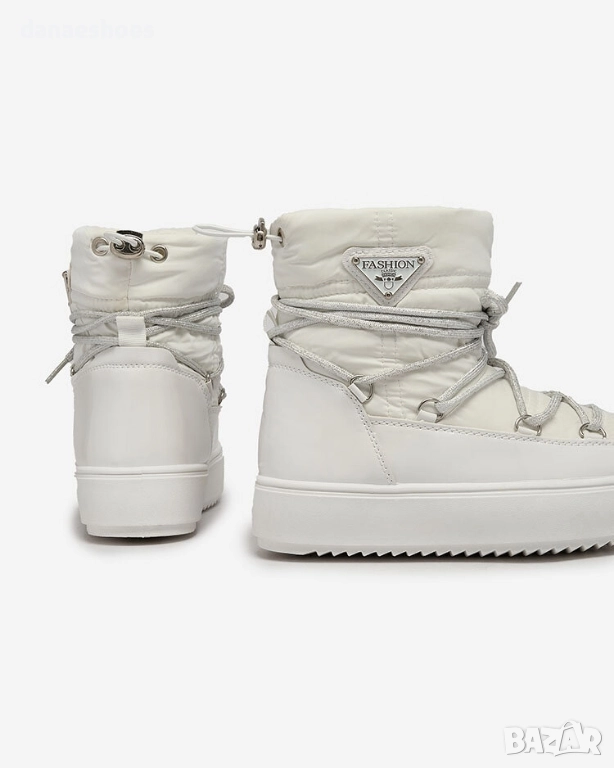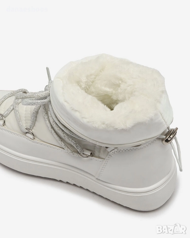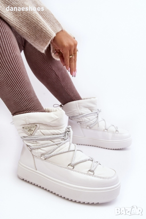 Страхотни дамски апрески с топла подплата. Дебела подметка с грайфер. Изработени от непромокаема материя в комбинация с лачена кожа. Модела е умален с един номер заради ватата вътре. Налични номера- 36,37,38, 39, 40