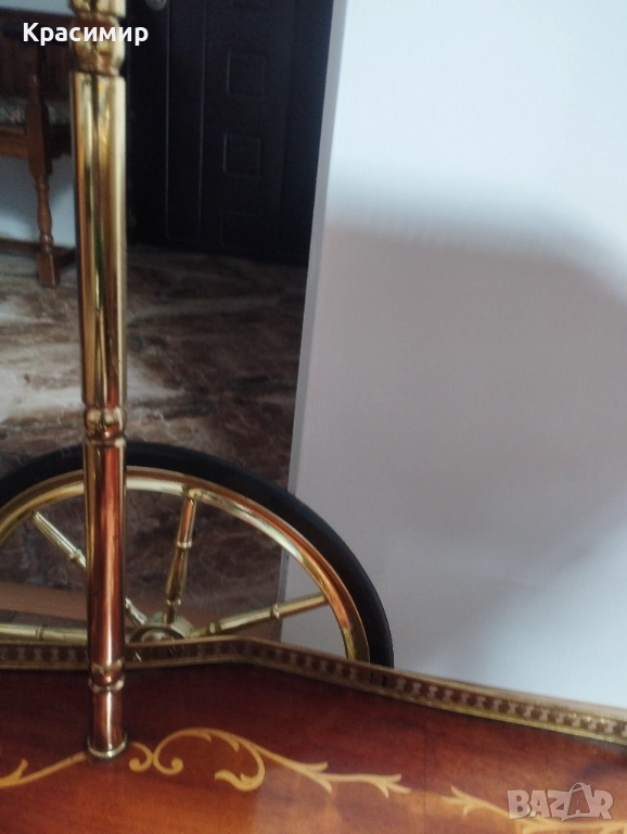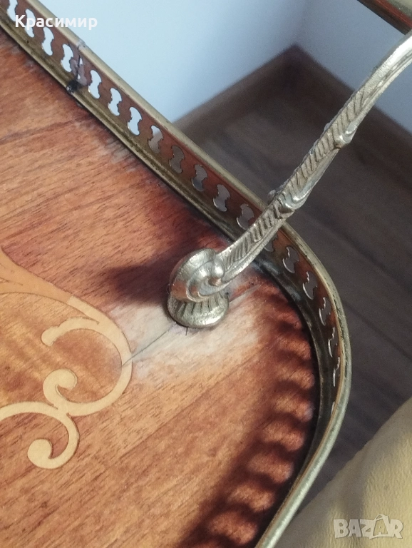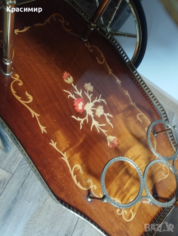 Старинна количка за сервиране с интарзия.
