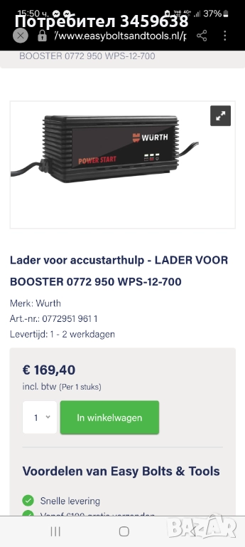 Зарядно за бустер WURTH → Обява 52512410