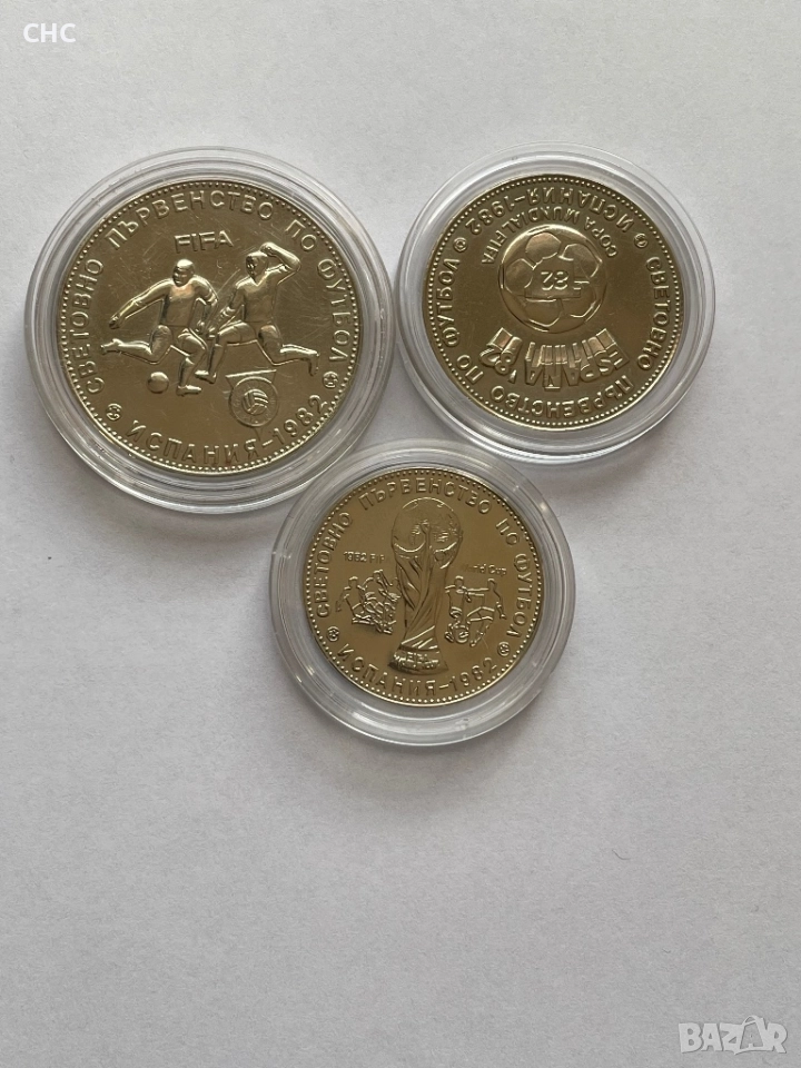 1, 2 и 5 лева 1980 година. Световно първенство по футбол Испания 1982 г. → Обява 52512490