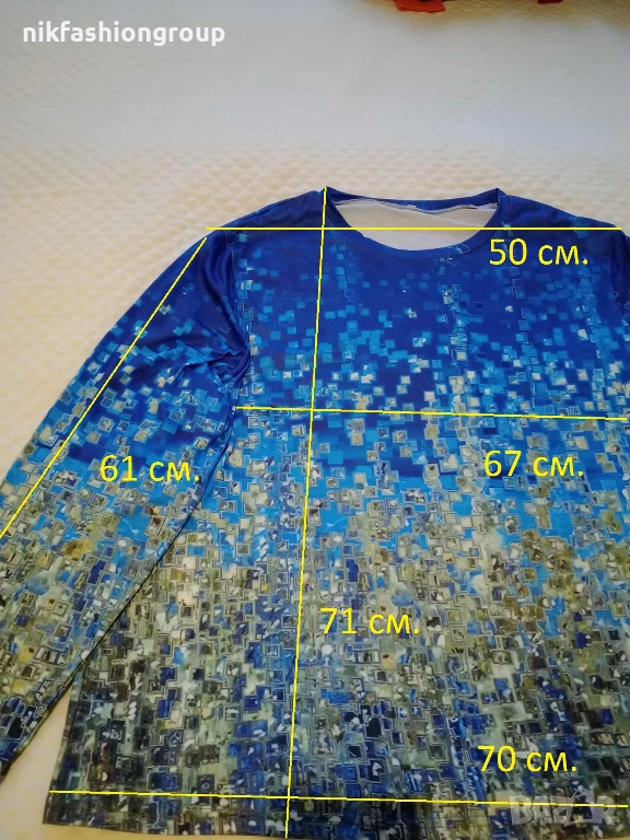 Туниката е нова. Материята е 100% полиестер. Размерите са показани на последната снимка.
