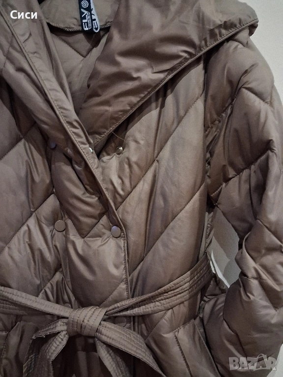 Дамска дълга топла ватирана шуба с двуредно закопаване