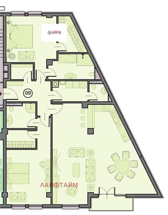 Агенция 'Лайфтайм' представя 3-стайни апартаменти за продажба в нова сграда с луксозно изпълнение. Разполага с лоби, 24-часова рецепция и контрол на достъп, заведение, фитнес, спа център, детски център, подземен гараж, външна градина и два асансьора за двете крила на сградата, както и етажен сметопровод. Сградата е построена според изискванията на съвременния живот.Отоплението е на Газ и климатици /сплит система/. Изложение: Изток/Север. Разпределение: