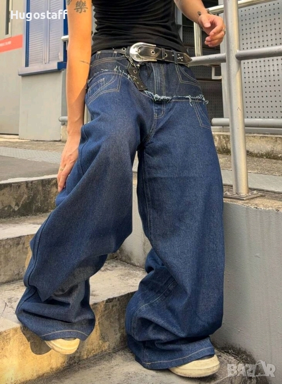 Нови baggy Casual Loose Fit Jeans дънки панталони карго двойни черно сини дизайн размер 34 → Обява 52513383
