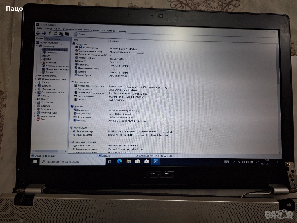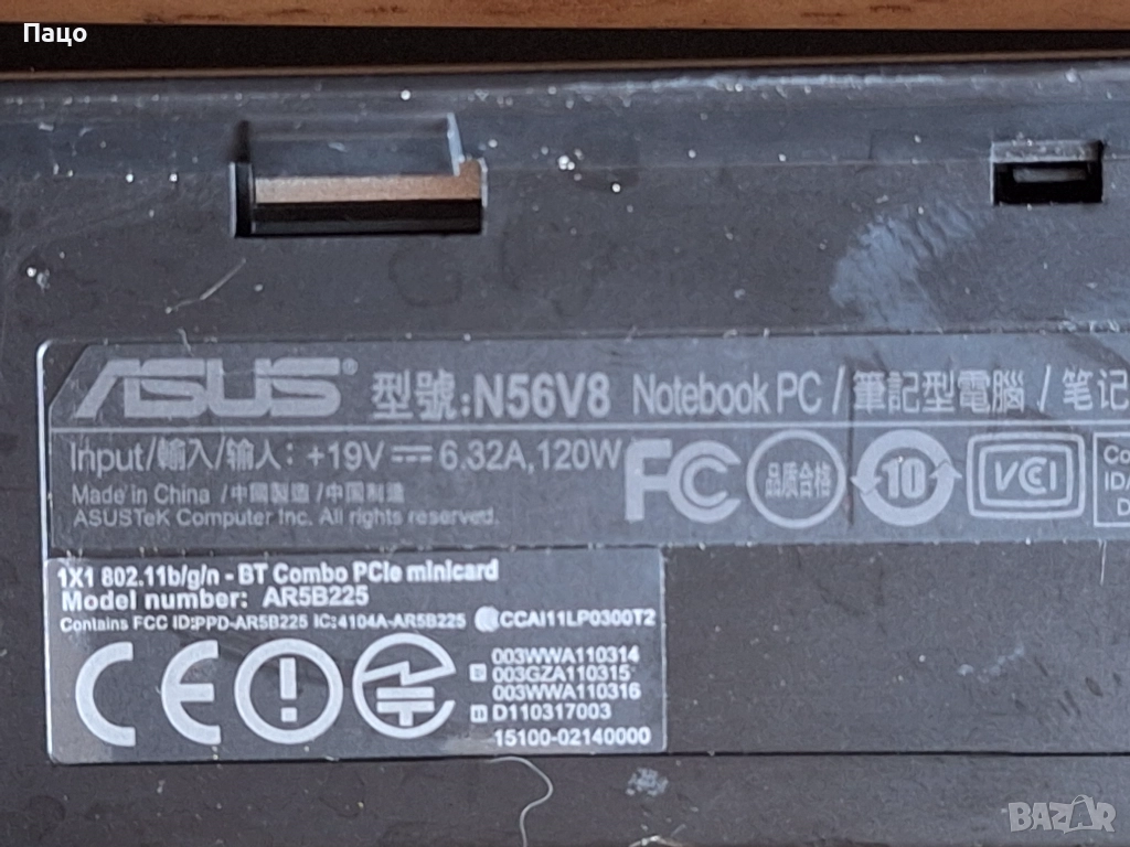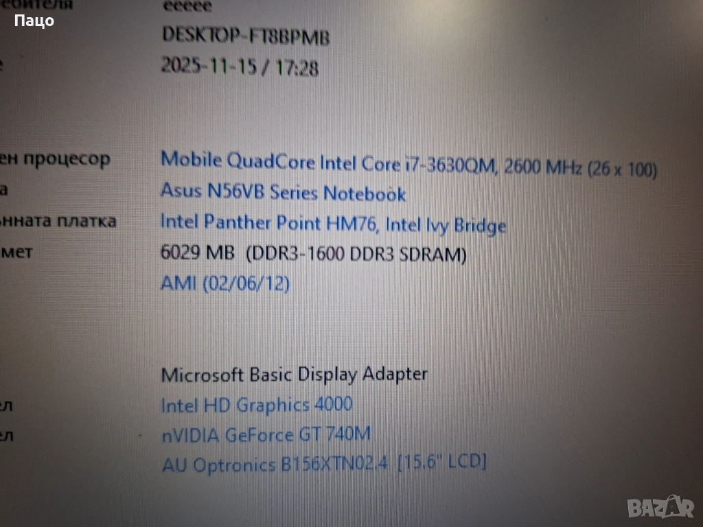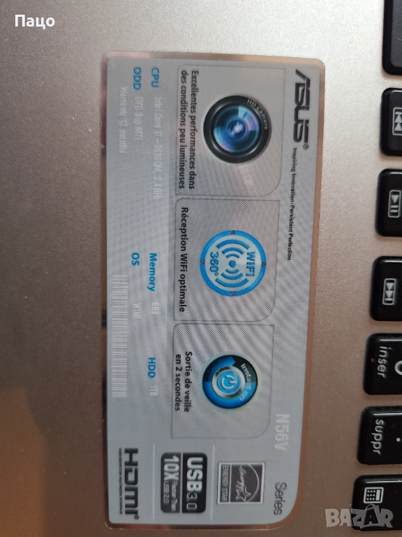 ASUS N56/четириядрен Intel Core i7-3630QM/8 GB РАМ/Тестван е,има снимки СЪС ЗДРАВ ЕКРАН И РАБОТЕЩО ДЪНО Е/С опция преглед и тест /Цената е твърда,символична/