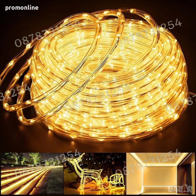 Светещ LED маркуч, три размера - 20м., в топла светлина, с включен контролер, водоустойчив, подходящ за Коледна и Новогодишна декорация.