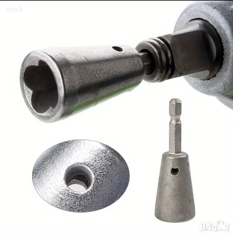 Инструментът представлява метален накрайник с шестостенна опашка, който се поставя в патронника на бормашина или винтоверт.