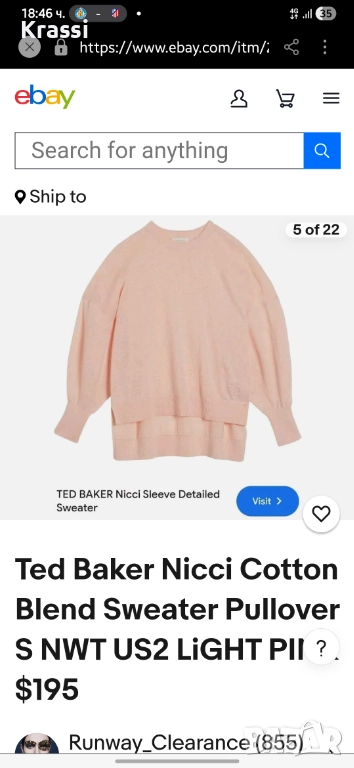 Ted Baker оригинална розова блуза. Тънък пуловер