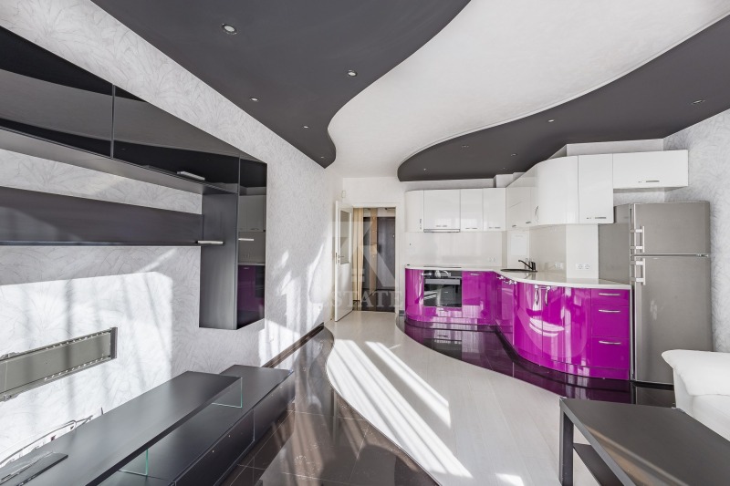 🔑 Апартаментът се намира на 2-ри етаж от 9-етажна сграда и е с площ от 100 кв.м. Интериорът му впечатлява с креативни цветови решения и дизайнерски изпипани детайли. Разпределението включва: входно антре, голям и светъл хол с обособена кухня в смел и модерен лилав цвят, бутикова спалня с дълбоки петролно зелени нюанси, уютна детска стая, баня с тоалетна, втора отделна тоалетна и тераса с южно изложение. Изложението гарантира щедра доза естествена светлина през целия ден, което подчертава топлината и хармонията на интериора. Отоплението е на ТЕЦ и климатик, топлата вода също е на ТЕЦ. Апартаментът е луксозно обзаведен с поръчкови мебели и внимателно подбрани акценти истински дом с характер.