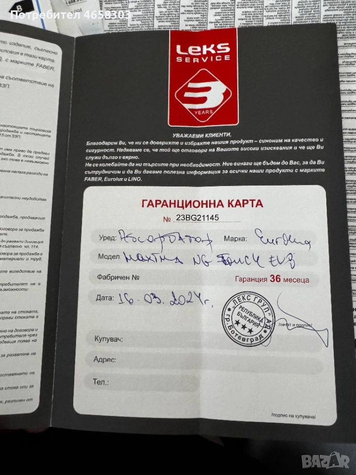 Поръчан е по погрешка. Има гаранция до 16.03.2026г.