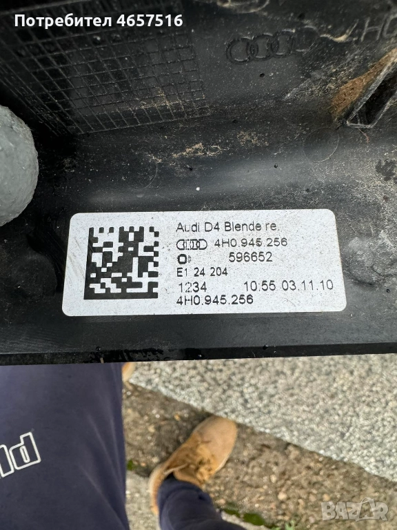 Дясна пластмаса криеща болтовете на стопа на багажника на Ауди Audi A8 D4 H4 само за 20Eur 4h0945256 → Обява 52515148