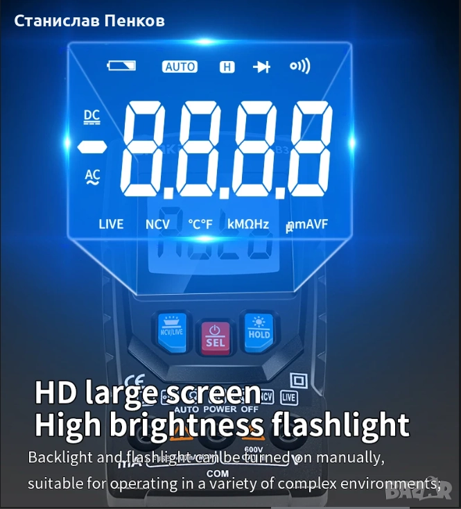 мултицет, професионален цифров AC/DC тестер за напрежение, амперметър, детектор за непрекъснатост, омове, NCV и др.
