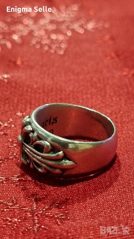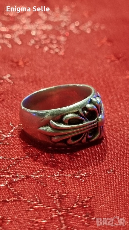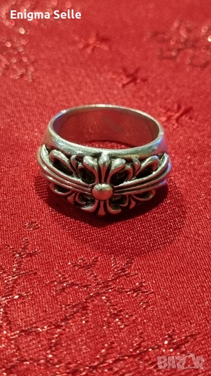 Хромиран пръстен със сърца с флорални мотиви, уникат , рядка находка .