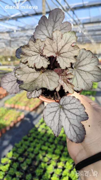 Хойхера „Сребърна боровинка“, Heuchera Silverberry, студоустойчива, за сянка → Обява 52516287