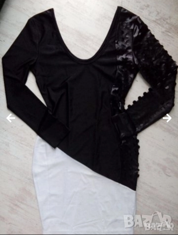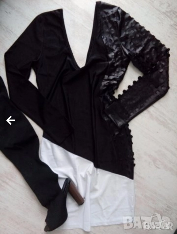 Елегантна рокля с кожен ръкав → Обява 52516293