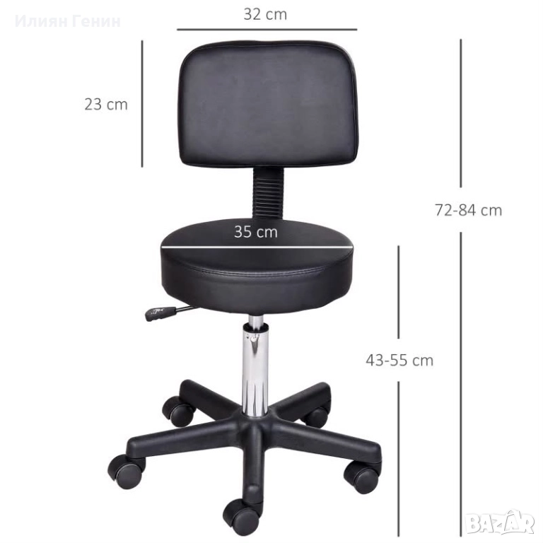 офис стол за офис, салон, масаж, спа, черен - 100.00лв.
