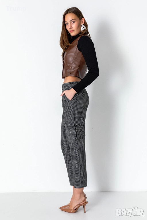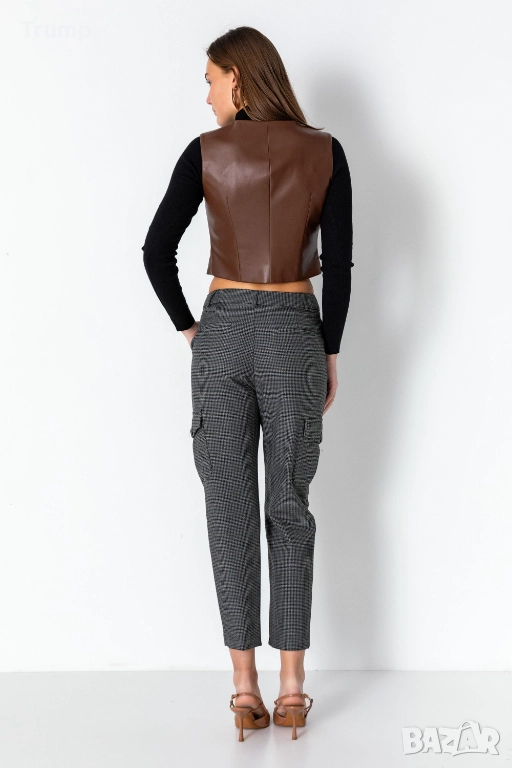 Елегантен елек от еко кожа в хитовия цвят за сезона цвят кафяв.