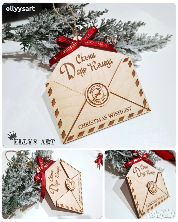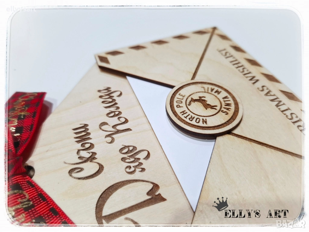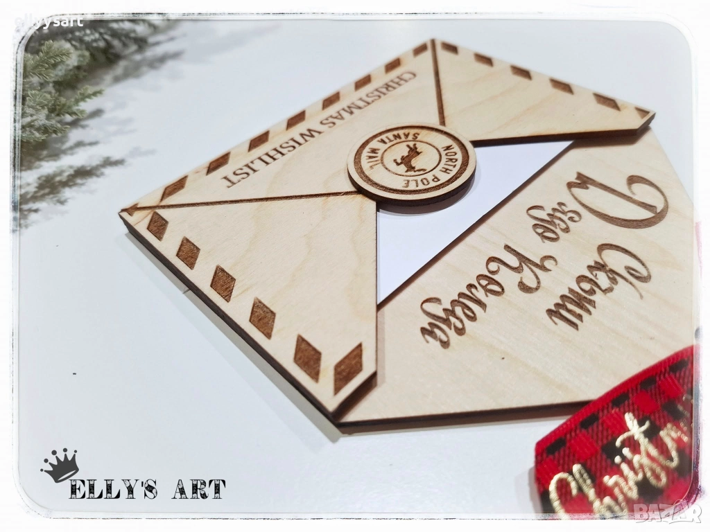 Дървен гравиран плик за писмо до Дядо Коледа → Обява 52517393
