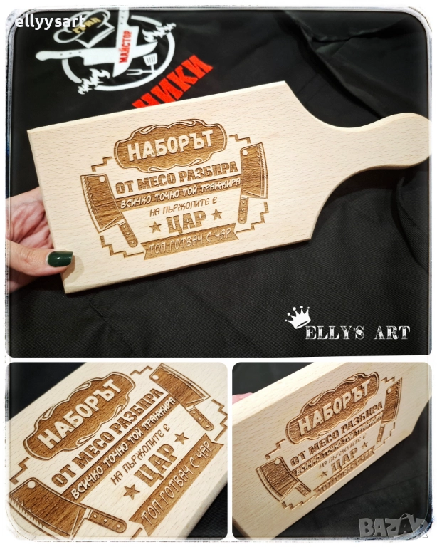 Малък размер гравирана дъска с опция за персонализиране. Размери: Ш-12см х В- 31см (с дръжката)/ 19см (бездръжката). Цена- 25лв/12.78 EUR