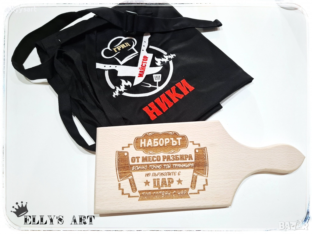 Подаръци Никулден готварска престилка и гравирана дъска