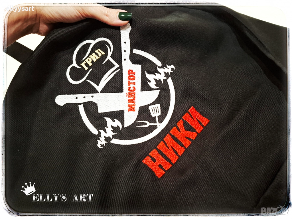 готварска престилка, изработена с машинна бродерия. Разполага с два джоба, регулатор за регулиране на височината и колан на кръста за регулиране в ширина. Цена- 40лв/ 20.45 EUR
