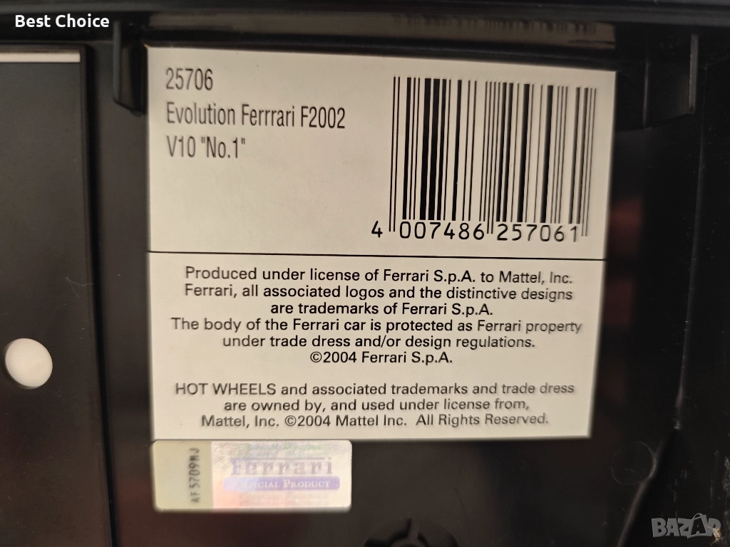 умален модел на Ferrari F2002 V10 No. 1 от Carrera, посветен на Михаел Шумахер.Може да се кара на писта ако е налична. 15см метална.