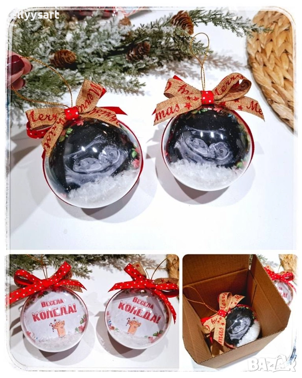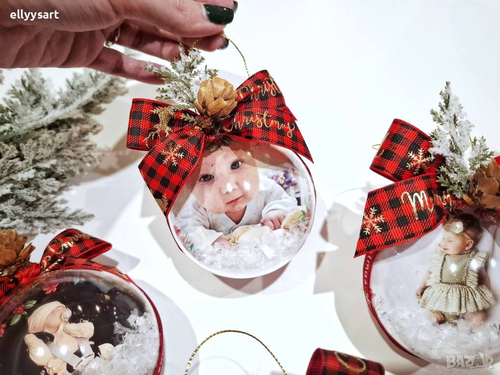 Коледна топка с Ваша снимка и персонализиран надпис → Обява 52517672