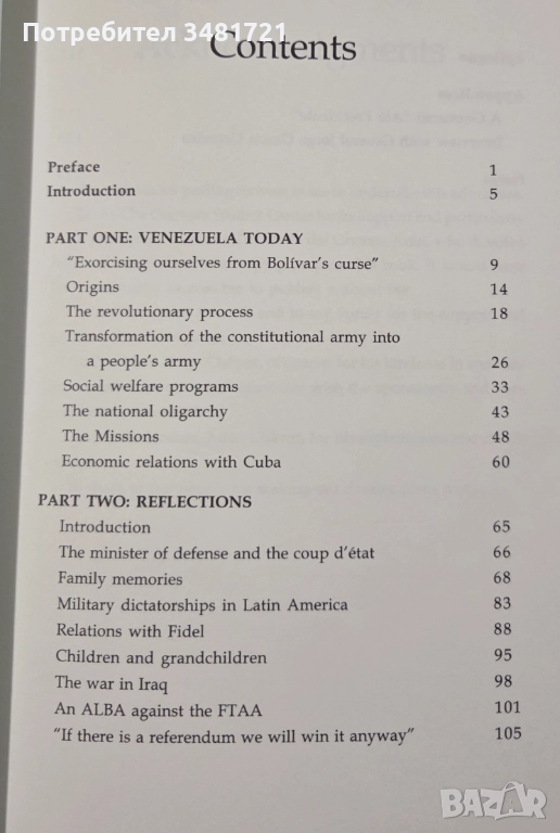Книгата е плод на интересна среща между бившия президент Уго Чавес и Алейда - дъщеря на Ернесто Че Гевара и застъпник за анти-глобализационното движение. В интервюто с нея той изразява своята яростно националистическа визия за Венецуела и ангажимент за обединена Латинска Америка. Обсъдено е също значението на военния преврат срещу правителството му през април 2002ра година, новата демократична конституция на Венецуела, обширните социални програми, предприети като част от Боливарската революция, както и оценката за отношенията на страната му със Съединените щати и Куба.