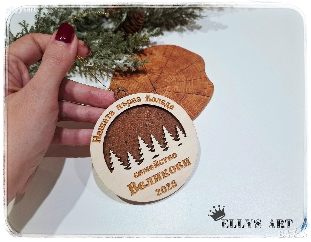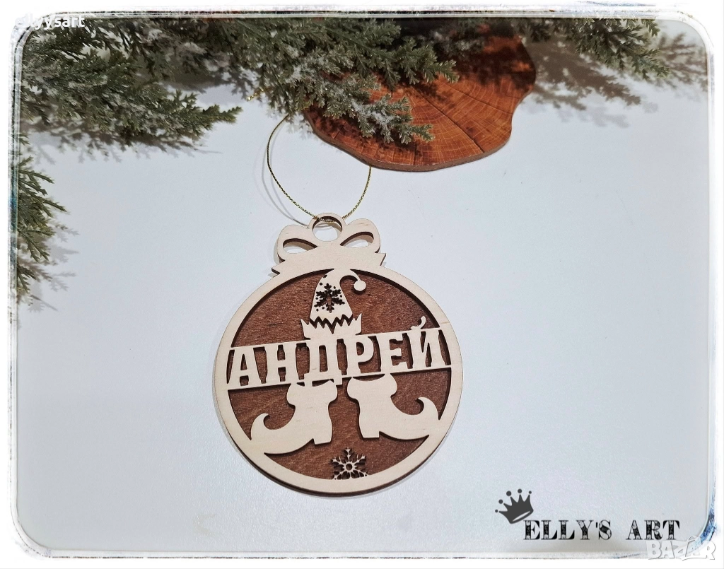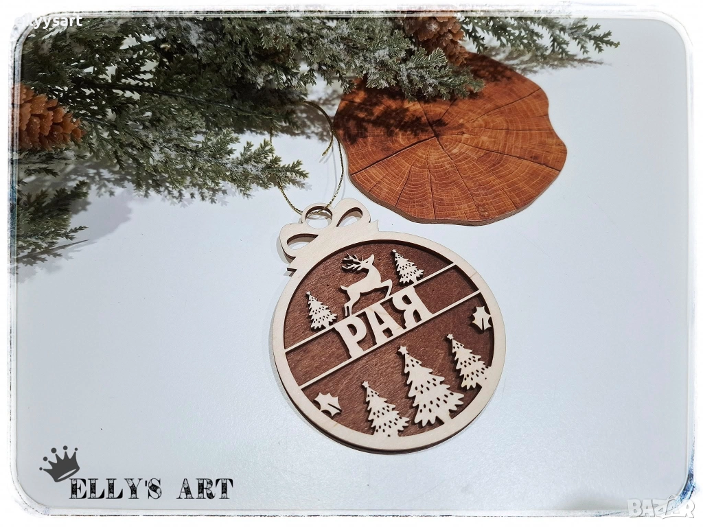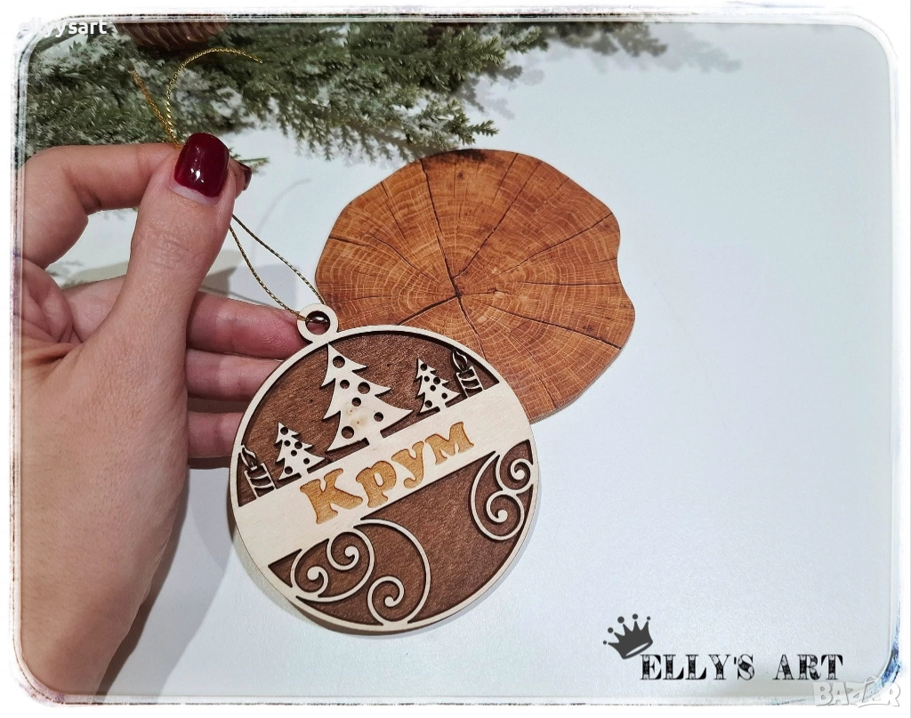 39. Персонализирани коледни висулки, изработени от два цвята дърво → Обява 52517796