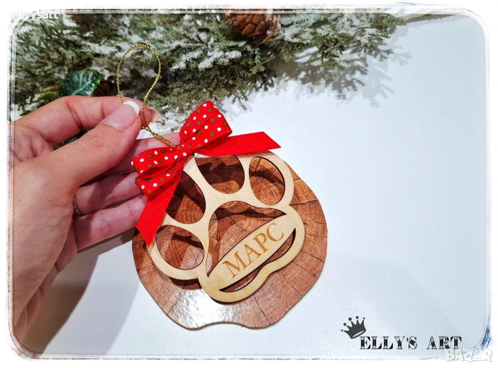Дървена гравирана висулка под формата на лапичка, декорирана с панделка, снимка 1 - Коледни подаръци - 52517844 Дървена гравирана висулка под формата на лапичка, декорирана с панделка, снимка 2 - Коледни подаръци - 52517844 1/2