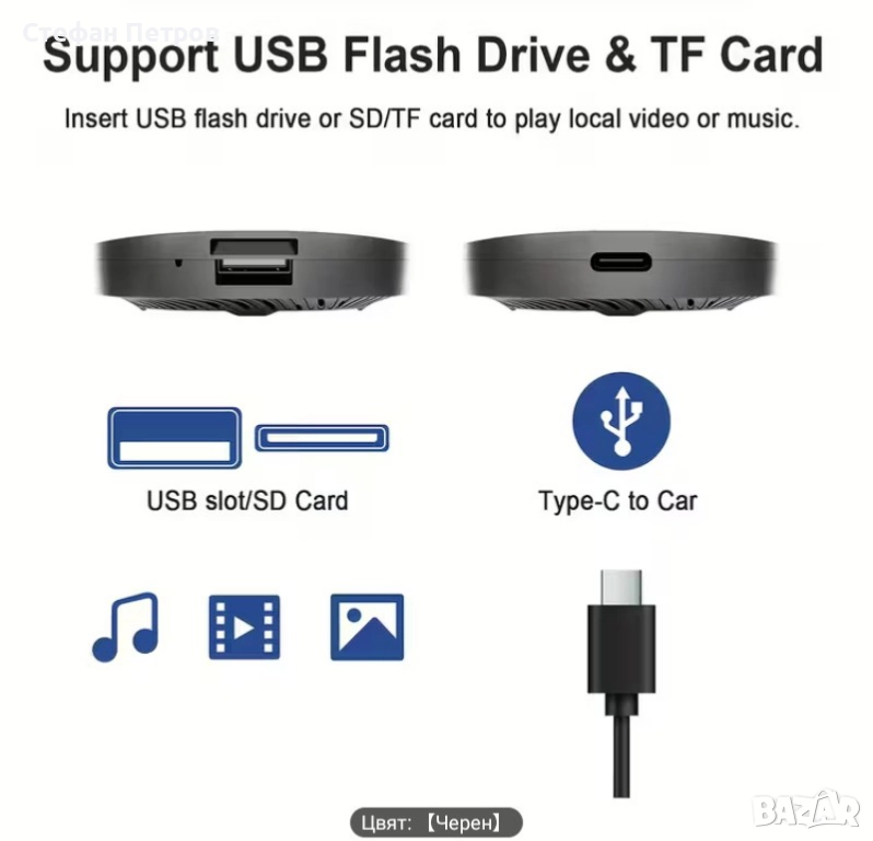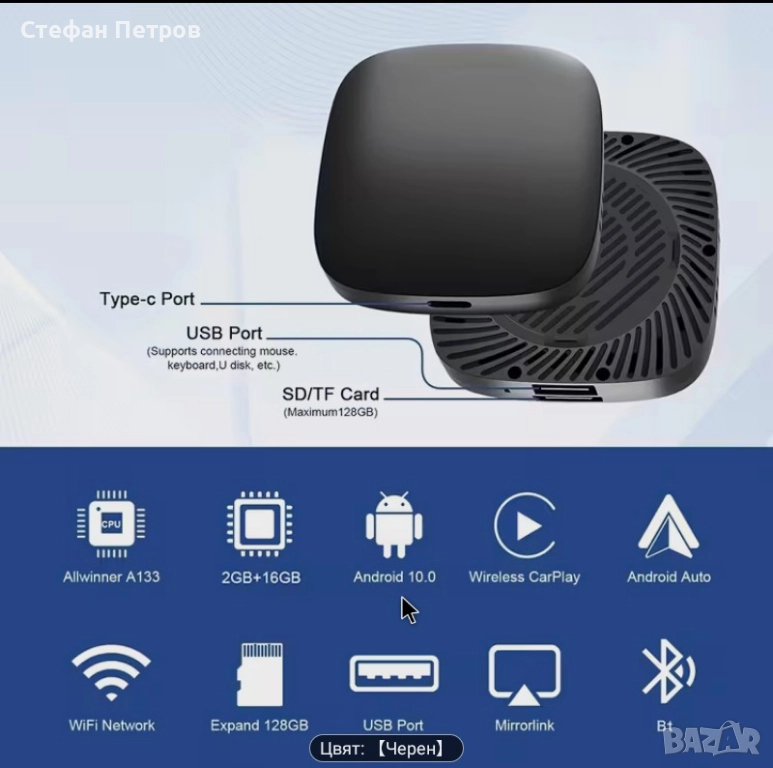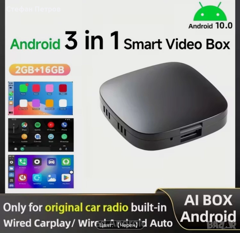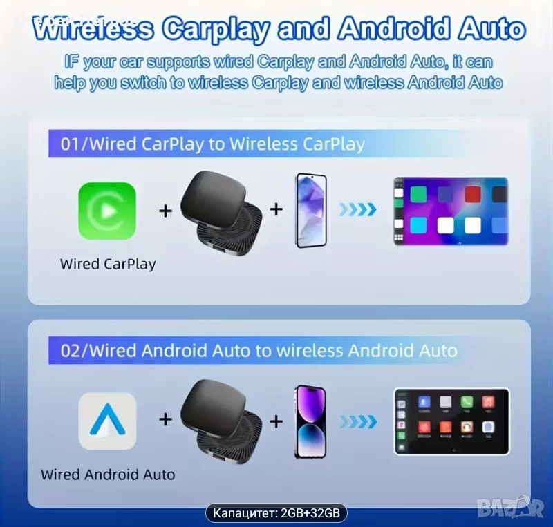 Ai Box Безжичен адаптер Carplay и Android Auto 3 в 1