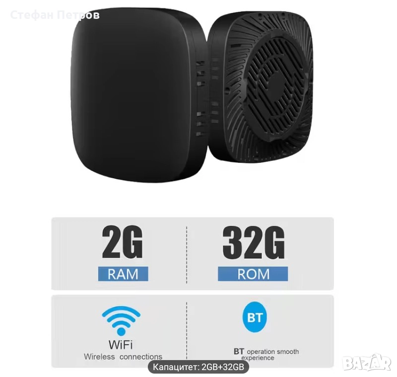 Особености: Устройството може да се използва за гледане на телевизия, за игри, за сърфиране в интернет, изпращане на имейли, ползване на фейсбук, гледане на онлайн телевизия, слушане на музика. То разполага с различни входове. Работи с твърд диск, флашка, компютър. При това с отлично HD качество. Описание: Поддържа видео формати 1080P@60fps multi format video decoder, 1080P@30fps video encoding за H.264 и vp8. Аудио форматите, които поддържа са MP3, WMA,APE, FLAC, AAC, OGG, AC3, WAV. Поддържа и Flash player 11. Поддържа TF карта памет до 32 GB. Има външна камера. Как функционира? Android TV box поддържа KODI в HD резолюция. Работи с безжична клавиатура или мишка. Също и с дистанционно управление. Приложенията, които желаете да инсталирате, може са изтеглите от Google play. Дизайн: Устройството е с практични размери. Има квадратна форма. Краищата му са заоблени. Изцяло в черен цвят е. Технически характеристики: Операционна система: Android 4.4.2; Процесор: Amlogic S805 Quad Core 1.5 GHz Fast CPU; Gpu: Mali-450 MP, поддържа и 3D игри; RAM: 512 MB DDR3; ROM: 8 GB (5.33 GB NAND FLASH + System Used); HDMI слот; RJ45 слот; WIFI: 802.11 b/g/n. Какво ще намерите в опаковката: Android TV box; Дистанционно; HDMI кабел 220 V Адаптер